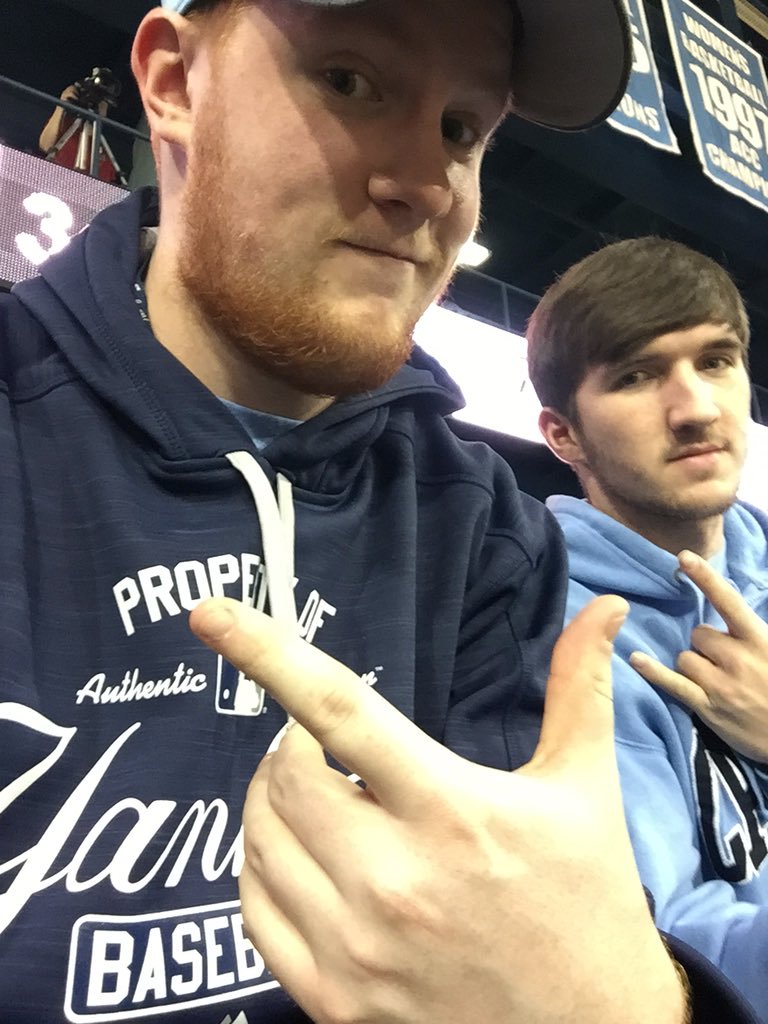 Ryan in his dorm on move in day Ryan on move in day with his brother Ryan at a basketball game with friends Ryan on TV at a football game Ryan playing mini golf with family Ryan has been a Giants fan his whole life Ryan at opening day for the New York Yankees Ryan at age 14 with a UNC mask